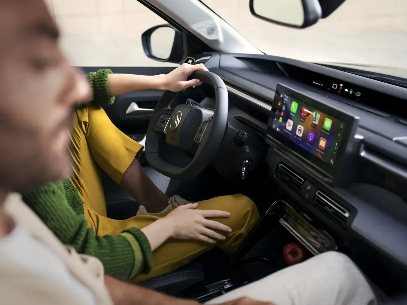 Citroën voorziet de ë-C3 Aircross van het C-Zen-Lounge®-concept, met Head-Up Display, een kleiner stuurwiel en nieuwe Citroën Advanced Comfort®-stoelen voor optimale ondersteuning. Het rijcomfort is hoog met de Citroën Advanced Comfort®-vering met dubbele, progressieve hydraulische “bump stops”, die Citroën voor het eerst en op alle versies monteert. Verder biedt de Citroën ë-C3 Aircross uitgebreide assistentietechnologie met een infotainmentsysteem van de nieuwste generatie en een 10,25-inch touchscreen.